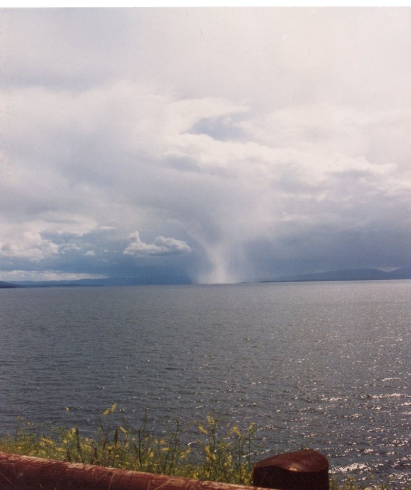 Sure enough, about a week later, I received a letter from an address in Ohio with a short note and a photo of what appeared to be a waterspout over Yellowstone Lake.